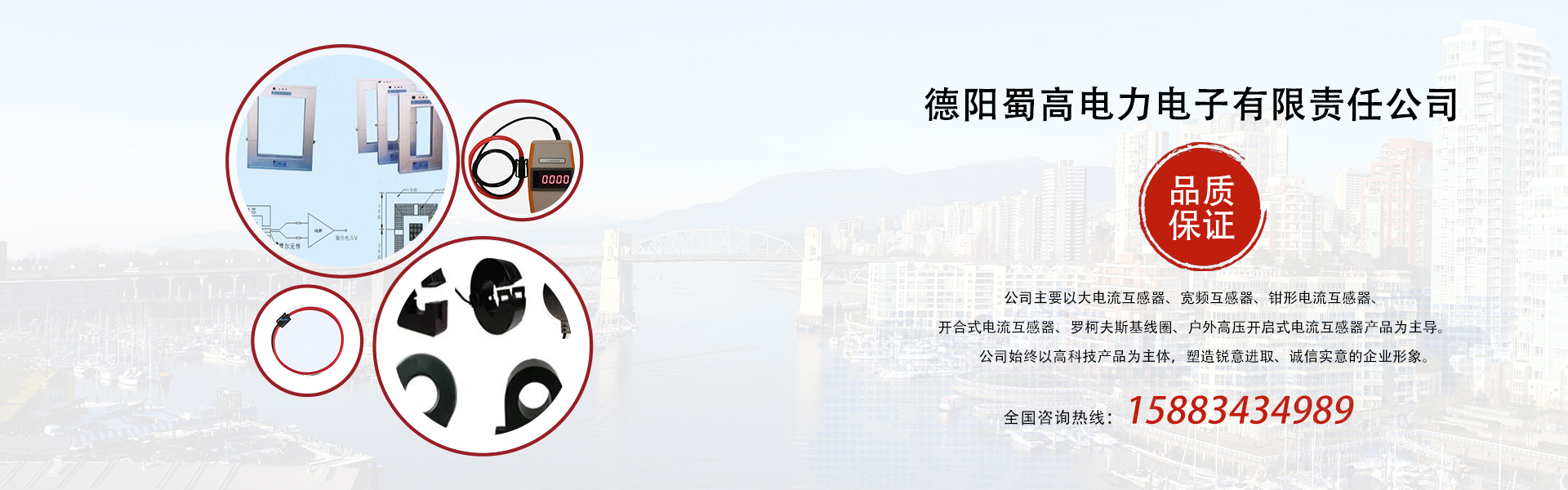 德陽(yáng)蜀高電力電子有限責(zé)任公司坐落在中國(guó)高科技定點(diǎn)實(shí)驗(yàn)城市-四川德陽(yáng)市,東臨成綿高速,西臨108國(guó)道,離成都雙流機(jī)場(chǎng)90公里,交通十分便利?!」緦?zhuān)業(yè)從事電力計(jì)量、測(cè)試應(yīng)用的高新技術(shù)企業(yè)。目前主要以大電流互感器、寬頻互感器、鉗形電流互感器、開(kāi)合式電流互感器、羅柯夫斯基線(xiàn)圈、戶(hù)外高壓開(kāi)啟式電流互感器產(chǎn)品為主導(dǎo)。公司始終以高科技產(chǎn)品為主體,塑造銳意進(jìn)取、誠(chéng)信實(shí)意的企業(yè)形象。 公司始終秉承“專(zhuān)業(yè)...